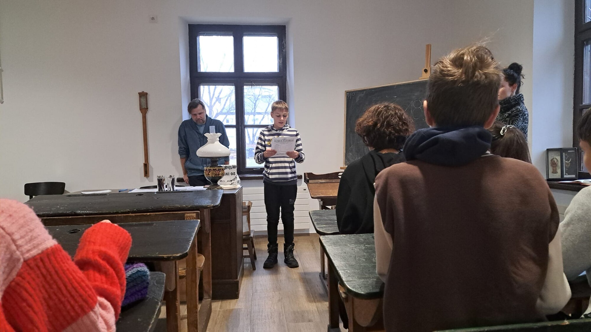 Uczniowie klasy 6d odwiedzili otwarte niedawno Muzeum z Klasą mieszczące się w wawerskiej Murowance. Była to doskonała okazja, by zasiąść w szkolnych ławkach sprzed stu lat, nauczyć się kaligrafii, poznać warunki, w jakich wiedzę zdobywali ich dziadkowie oraz odkryć historię Wawra.